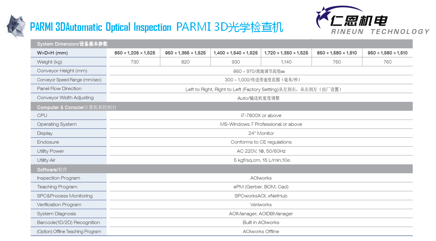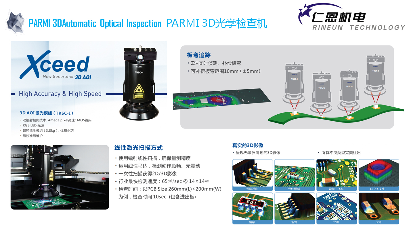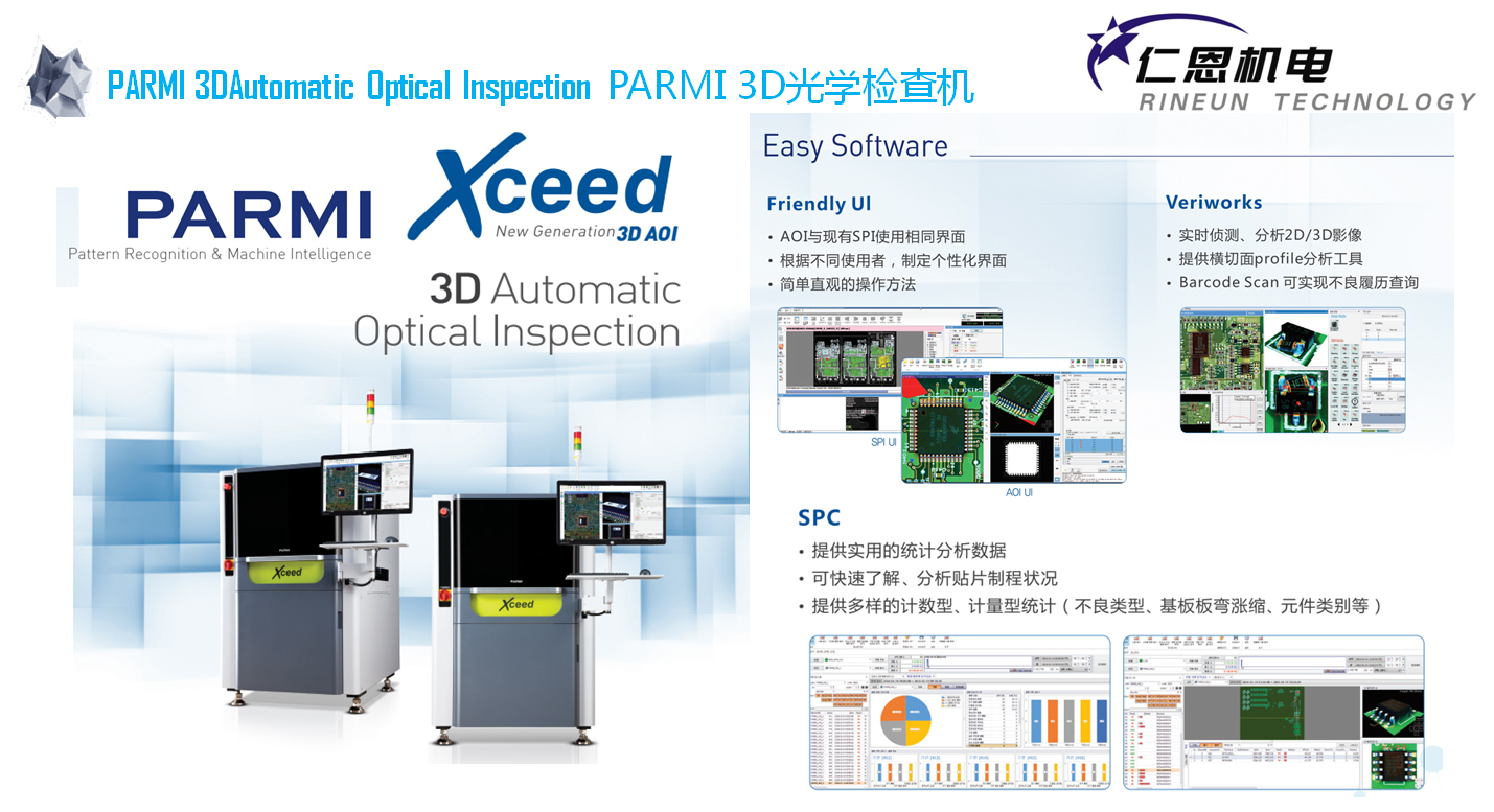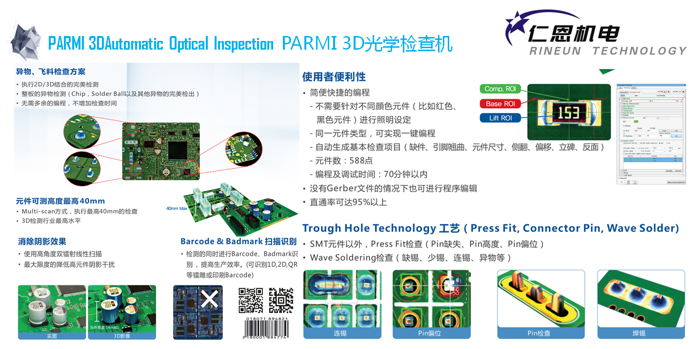 PARMI 3D光学检查机 不需要针对不同颜色元件进行照明设定,同一元件类型,可实现一键编程,自动生成基本检查项目,直通率可达95%以上。